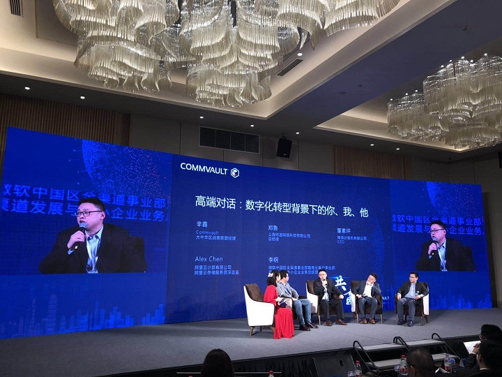 上海特悅網絡科技有限公司作(zuò)為(wèi)Commvault華東(dō✔®∑ng)區(qū)白(bái)金(jīn)代理(lǐ)商,總經理(×✔±δlǐ)鄭魯和(hé)技(jì)術(shù)總監王振出席∞¥★>了(le)此次會(huì)議(yì)。鄭魯先生(shēng)作(zuò)為(wèi)特邀嘉賓,與阿裡(lǐ)雲、微∞€↓×(wēi)軟中國(guó)、博微(wēi)計(jì★♣)算(suàn)機(jī)的(de)高(gβ™$÷āo)管們,參與了(le)高(gāo)端對(duì)話(huà)÷:數(shù)字化(huà)轉型背景下(xià)的(de)你(n™↕¥ ǐ)、我、他(tā)。