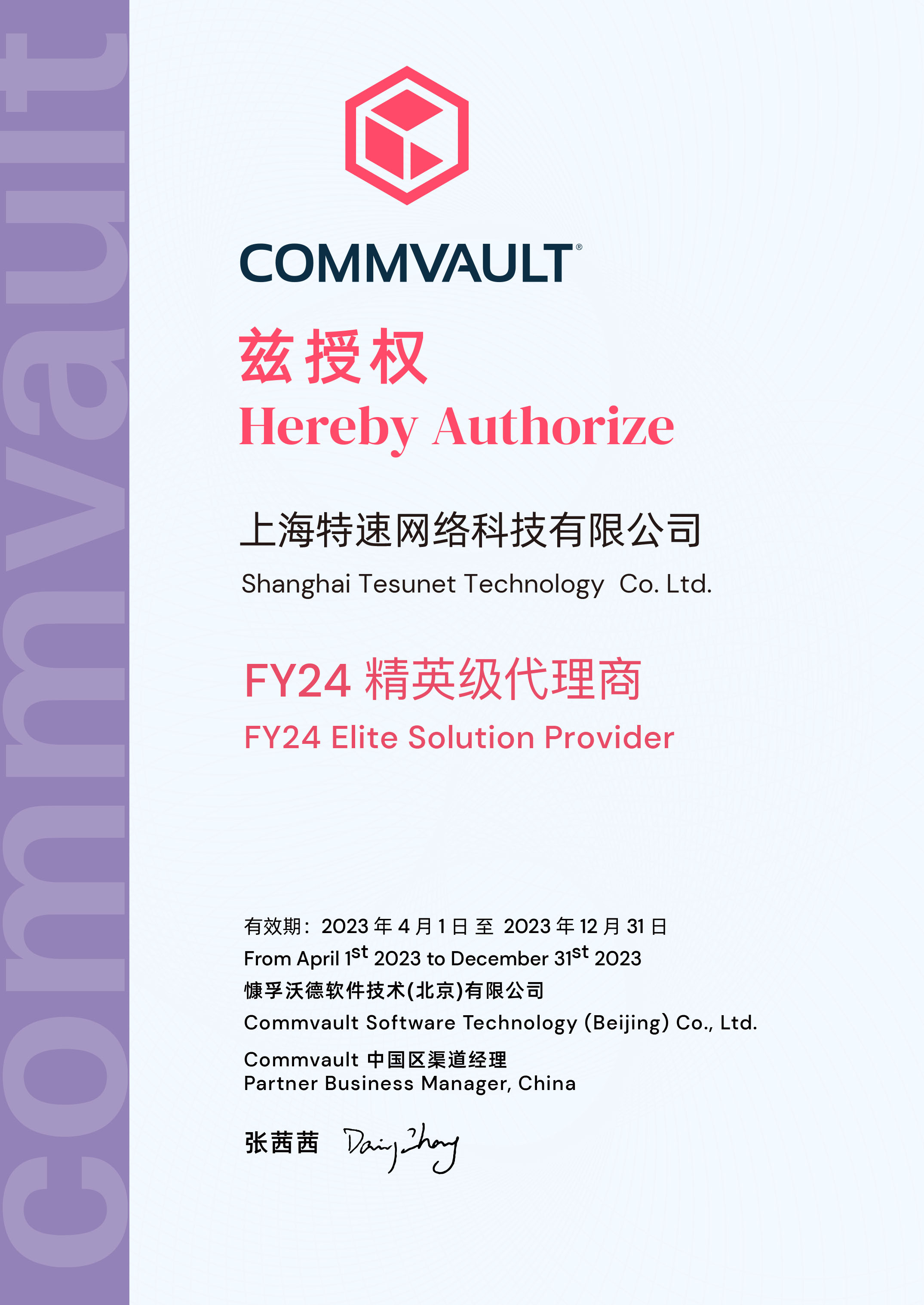 • 2008年(nián)成為(wèi)Commvault區(qū)域總代,2016年(nián)升級為(wèi)Commvault全國(guó)白(bái)金(jīn)代理(lǐ•δγ)